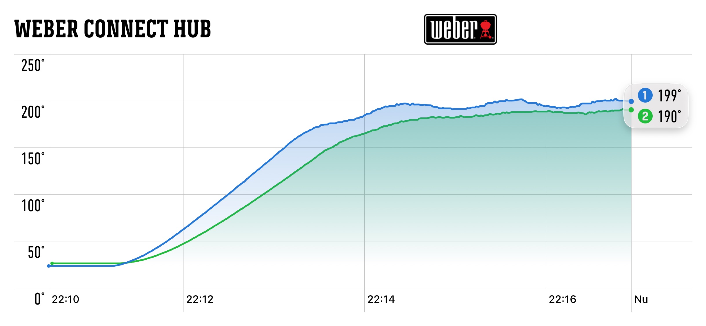Standardinställningen är 180 grader, vilket är bra, men tiden är förinställd på 20 minuter. Det leder till att man väldigt ofta måste trycka många gånger för att få ner tiden till en mer normal längd. Det lilla facket kom upp till 180 grader efter 2:40, vilket är väldigt snabbt, men låg sedan uppåt 200 grader. 20 grader för hög värme är på tok för mycket och gör att man måste ställa värmen för lågt för att inte bränna maten. Vi provade att höja till 200 grader, vilket är max, och då nådde den hela 230 grader. En oacceptabel skillnad som tyder på dålig kalibrering. Den stora korgen nådde 180 grader efter 3:20, som också är bra. Den lade sig sedan runt 190 grader som inte heller är bra nog men ingen katastrof.