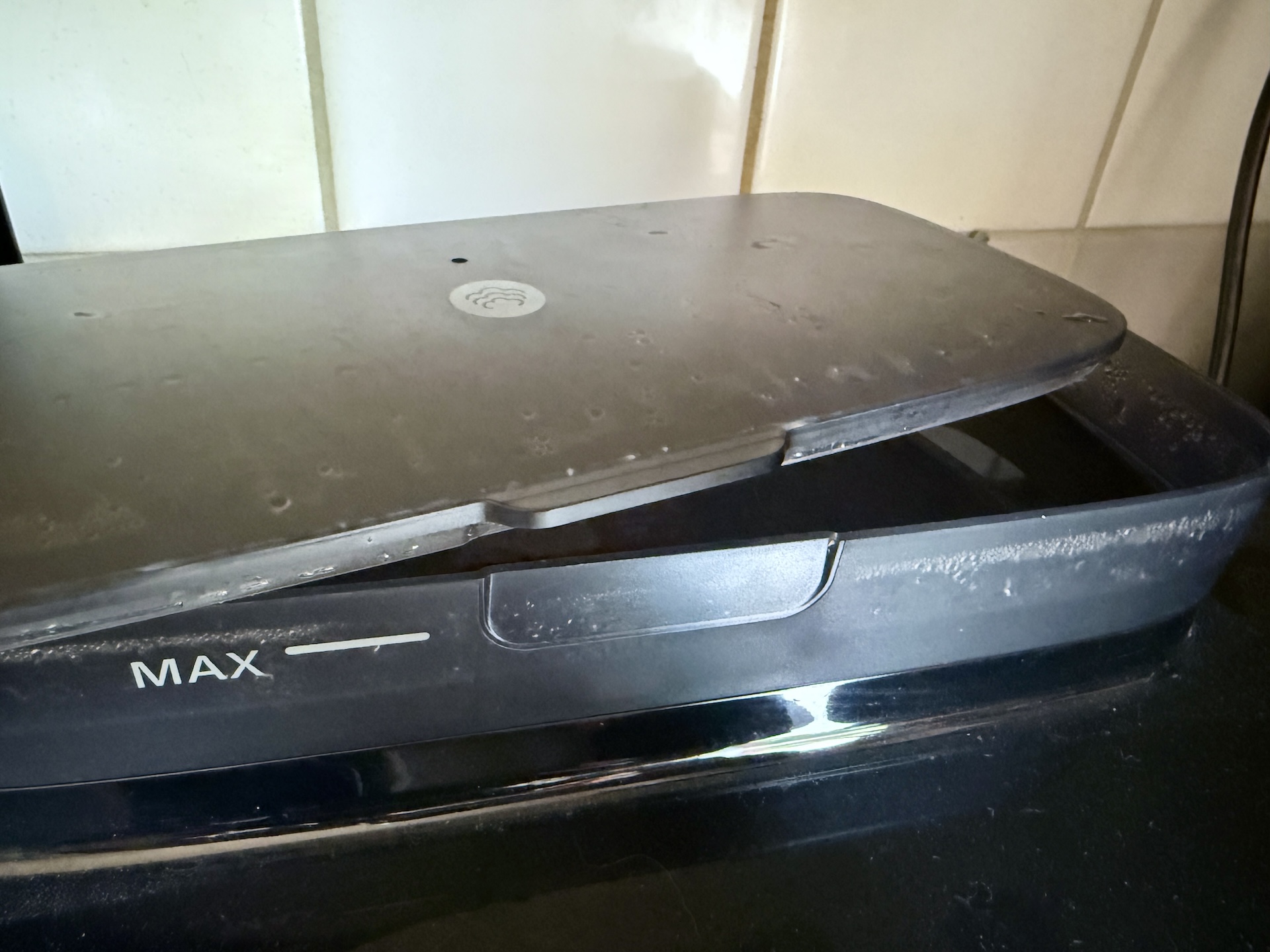 På ovansidan har Dual Basket NA555 en touchpanel som i sig är riktigt bra. Genom att bara de symboler som är relevanta just nu lyser så slipper man leta bland mer eller mindre tydliga ikoner. Men eftersom den sitter på ovansidan måste man vara lång för att se den, vilket gör den mycket opraktisk för barn. Vattentanken på ovansidan gör att man inte kan lägga tillbehör ovanpå den. Något som vi vet att man, enligt instruktionsboken, inte ska göra. Men som vi nog alla gör när platsen på köksbänken tar slut.