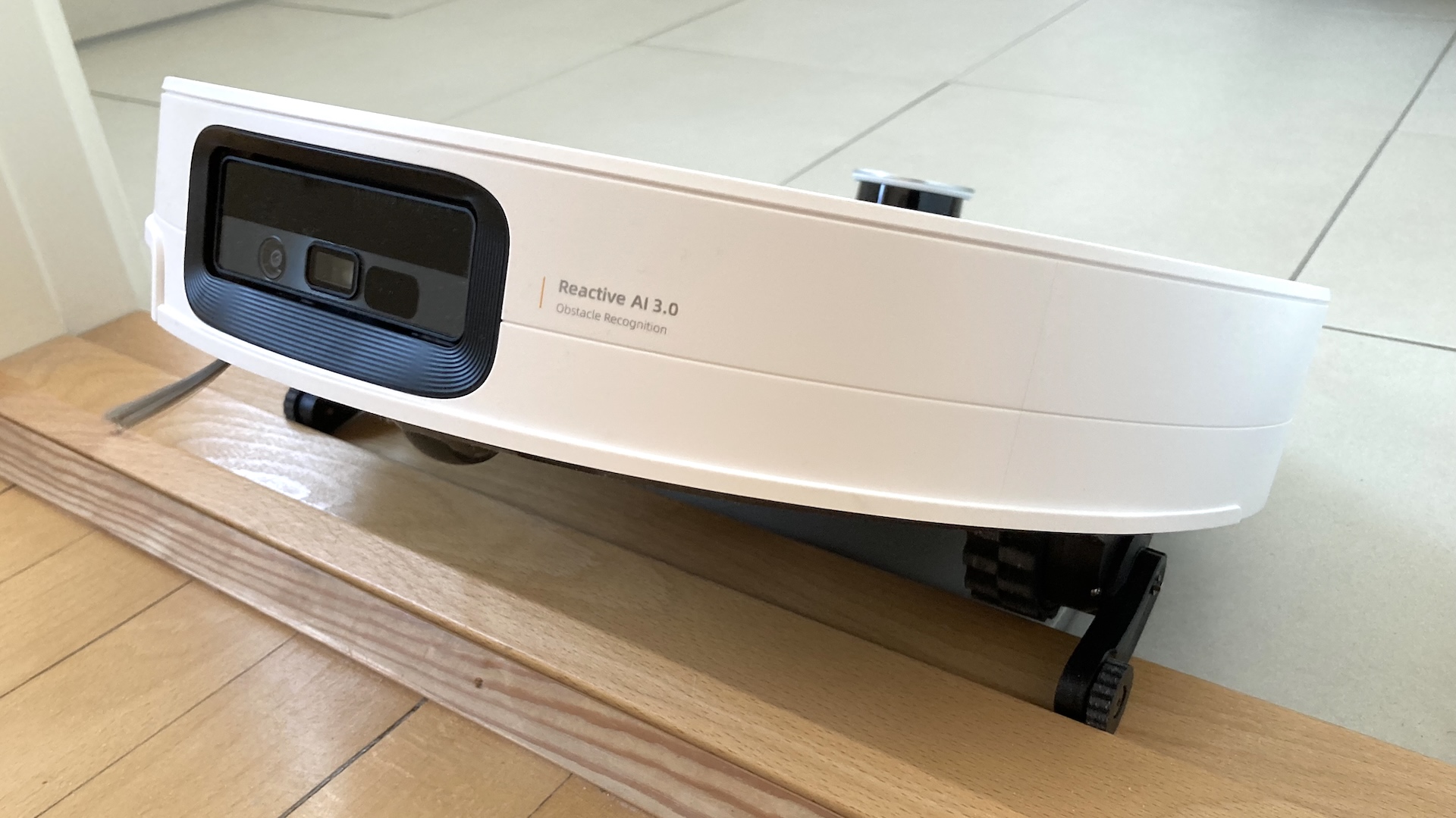 Till skillnad från bland annat modeller från Mova och Dreame är det inte bara framsidan av chassit som höjs. Både fram- och baksidan lyfts med hjälp av hjulen och de två små benen. I praktiken ger det en mycket smidigare passage över till exempel dörrtrösklar.