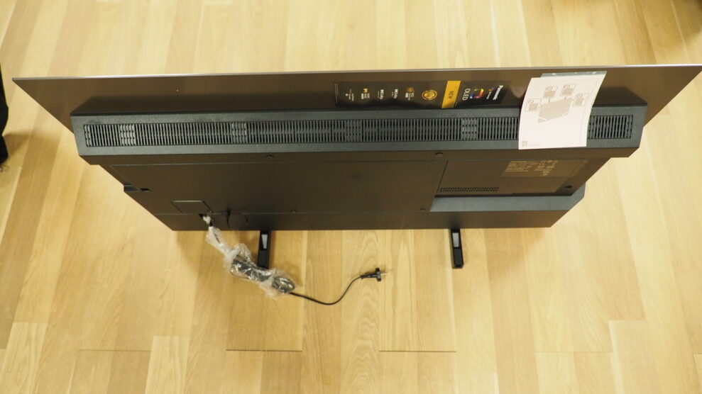 JZ1000 är superenkel att installera: här är det bara att klicka in två fötter som inte behöver skruvar. Däremot ingår det två ”spacers” av gummi som kan användas om skärmen ska höjas en smula (till exempel för att få plats med en soundbar under).