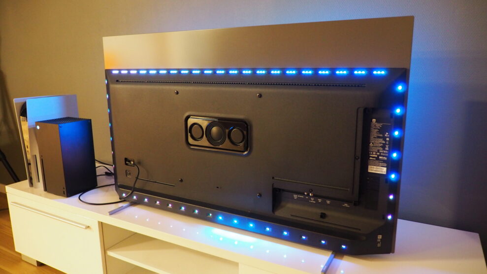 Designen präglas förstås av fyrsidig Ambilight på baksidan. Observera att du får ut det mesta av den fjärde och nedersta sidan om du hänger upp TV:n på väggen, ljuset under TV:n syns inte lika bra om den står på en bänk.