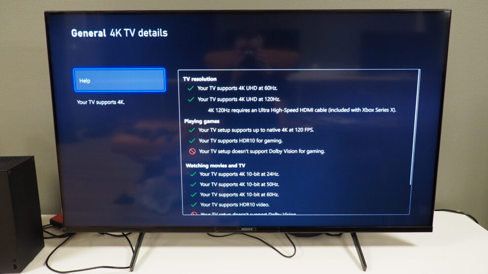 X90J har även bra formatstöd, där Dolby Vision ger bra återgivning av HDR-innehåll från exempelvis Xbox Series X. Tyvärr kan man inte välja både Dolby Vision och 120 Hz-läge samtidigt, man måste välja mellan att köra Dolby Vision i 60 Hz eller vanlig HDR i 120 Hz. Rivalen LG OLED C1 stöder båda samtidigt.