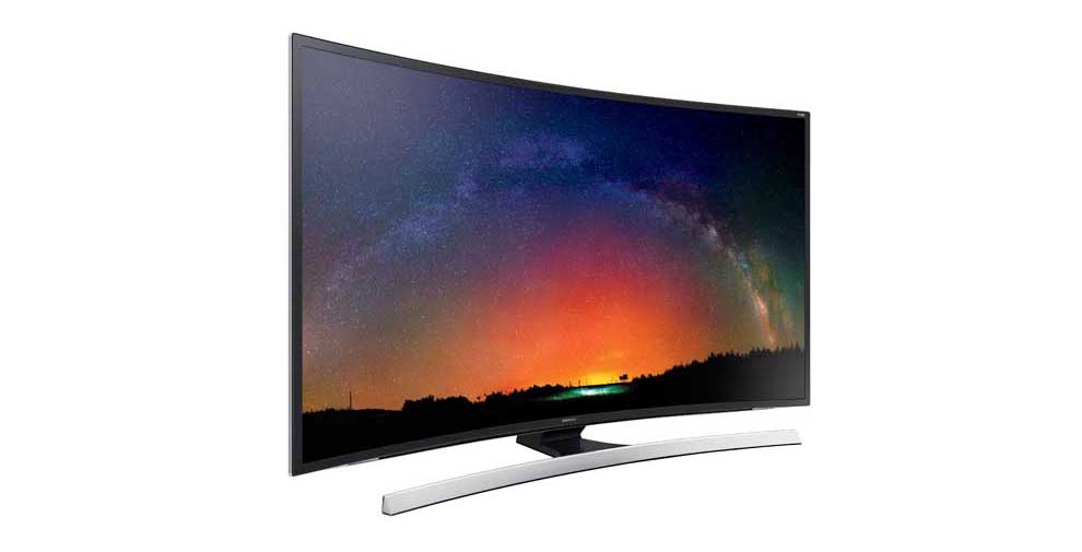 55JS8505 har en välvd design och en smal, mörkgrå ram och en stilig, mittmonterad sockel. Den blanka skärmytan präglas dock av lite spegelbilder, som blir konkava på grund av just den böjda formen.