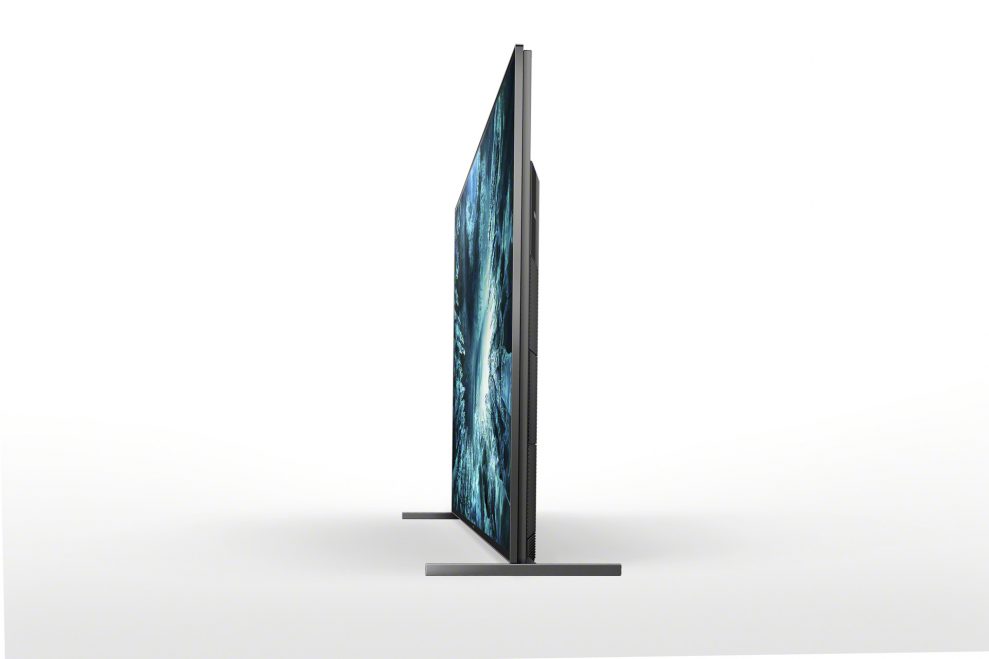 Det syns att Sony ZH8 är en TV där ingenjörerna fick säga sitt långt innan formgivarna fick vara med. Vi snackar om en ganska så tjock och kantig konstruktion, som nästan påminner om antika bakprojektions-TV-apparater! Skillnaden mot Samsung och deras trådsmala toppmodell Q950TS kunde knappast ha varit större. Men det finns goda skäl till den extra tjockleken: Sony har uppenbarligen sett till att det ska finnas gott om plats (och förmodligen också kylning) för den starka LED-bakbelysningen.