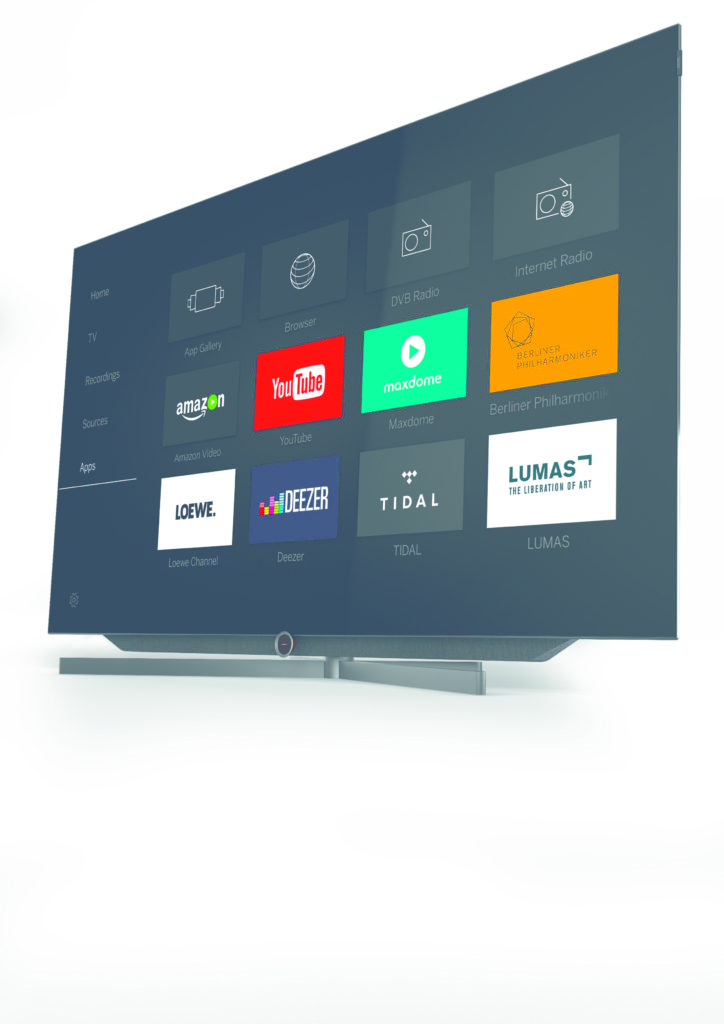 Nu för tiden är vi vana vid att Netflix, Amazon, HBO och liknande streamingtjänster finns inbyggda i de flesta TV-apparater, men hos Loewe får vi nöja oss med ett mycket litet och mycket dåligt urval av appar. Det beror på att Loewe insisterar på att använda sitt eget OS. Du kan titta på konserter från Berlins Philharmonika-orkester, strömma lite från YouTube eller lyssna på musik från Tidal. Det är i stort sett allt. Jo, det finns Twitter också, men vad ska man ha det till? Vi frågade naturligtvis Loewe om detta och svaret blev tyvärr att det är app-utvecklarna som väljer om de ska finnas på de olika plattformarna. Loewe är helt enkelt för små för att app-utvecklarna ska bry sig om dem. Samma sak gällde för övrigt B&O, som därför skäl bytte till Android. Loewe befinner sig fortfarande ute i kylan och sådant tappar man poäng på.