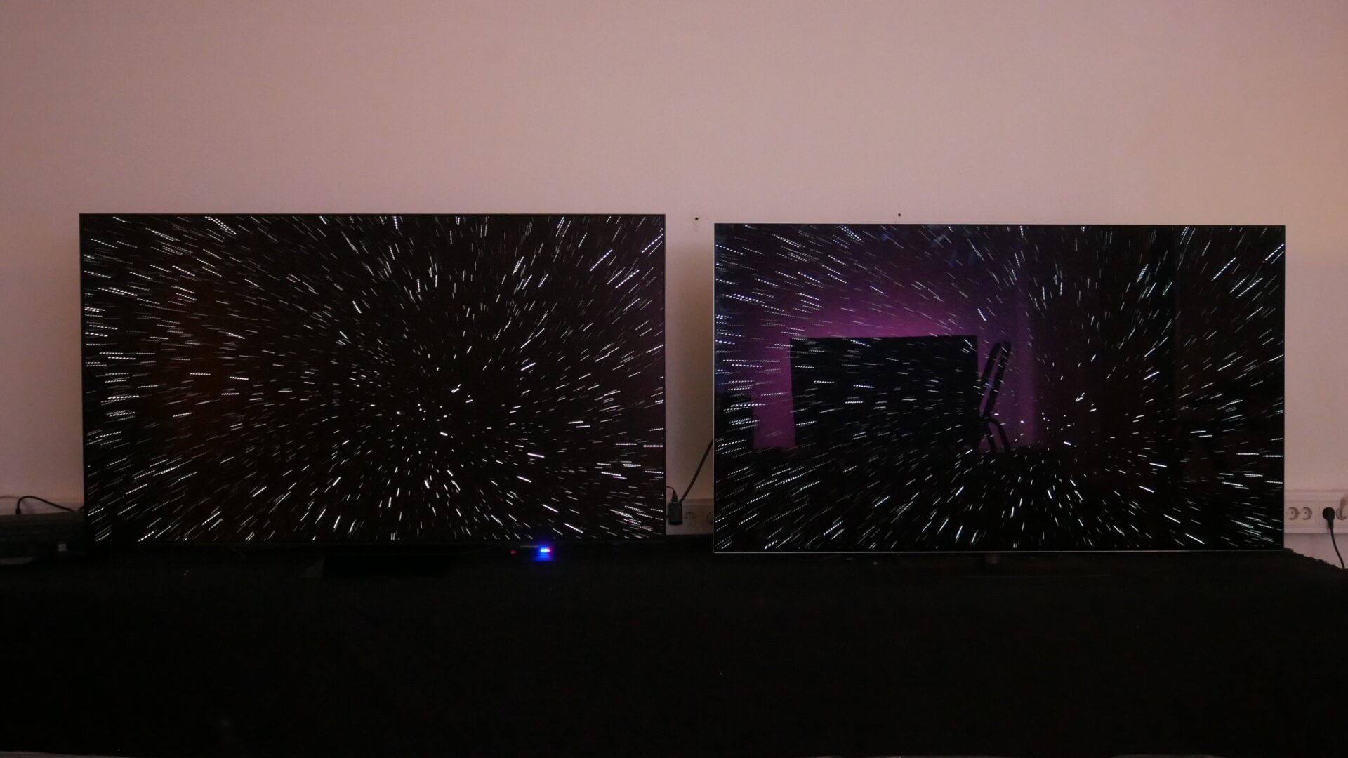 Å andra sidan fanns det även många andra situationer där Samsung-skärmen såg klart renare och skarpare ut, tack vare den matta ytan. När belysningen i rummet dämpas eller släcks är det å andra sidan liten skillnad på svärtan. Och detta ger Samsung-skärmen en betydande fördel i många fall, speciellt om man har lampor eller fönster direkt bakom TV-soffan. Med andra ord får man helt enkelt prioritera själv, beroende på sina egna preferenser och ljusförhållanden i hemmet.