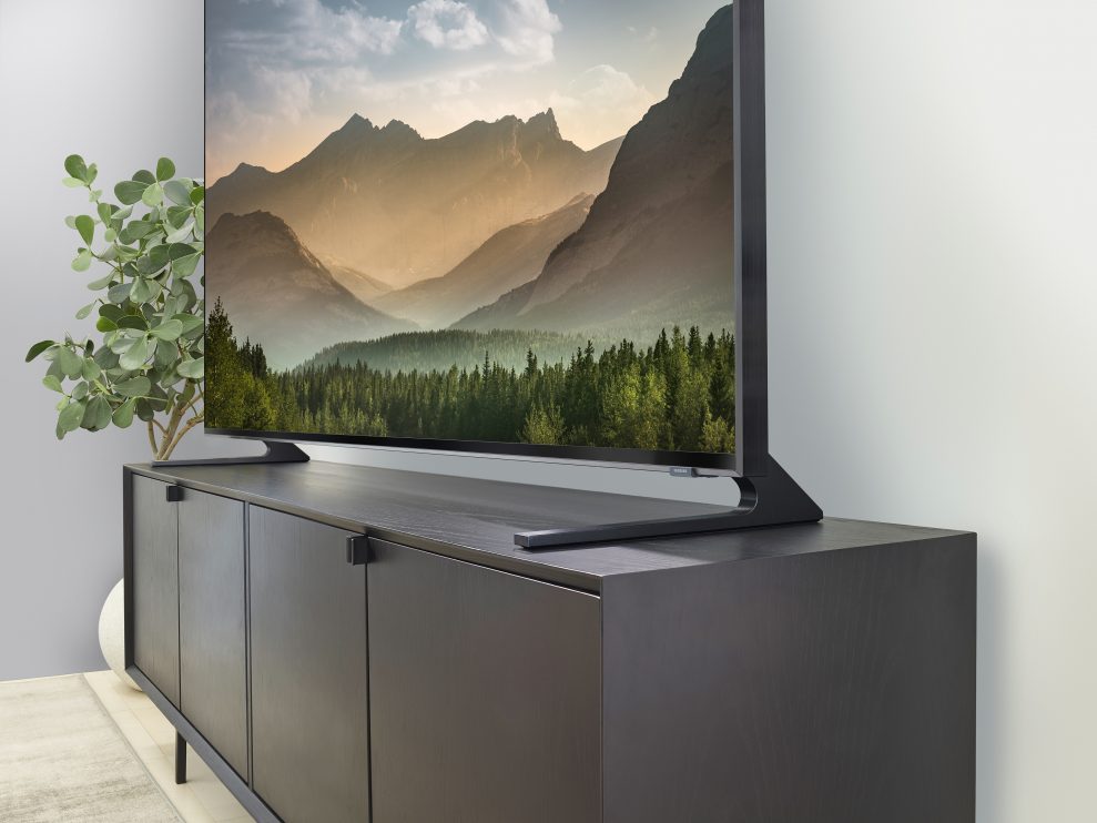 Samsung Q950 har egentligen en ganska så nedtonad design, utan något bling-bling – till och med Samsung-loggan är väl dold. De flesta av godsakerna finns ”under huven”. (Foto: Samsung)