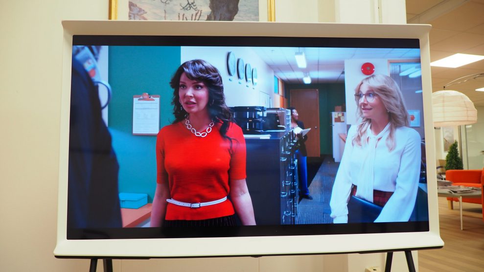 När vi sitter rakt framför TV-skärmen ser bilden däremot utmärkt ut. Och då visar sig några av fördelarna med The Serif: den är enkel att flytta runt och det går fint att ställa den i ett hörn och vinkla in den mot TV-soffan. På så sätt går det smidigt att hitta en optimal synvinkel från där man sitter.