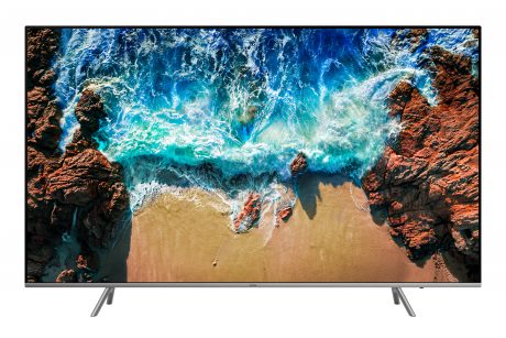 Med en storlek på nästan 2 kvadratmeter (183×105 cm) säger det sig själv att UE82NU8005 är en dominerande TV i alla vardagsrum. Däremot känns den relativt tunn, utan mycket överflödig massa runt själva panelen. Skärmen står stadigt på bänken och verkar mer solitt byggd än de mindre varianterna. Baksidan är slät och fin, med infällda spår för kablar, som kan dras ner dolda genom foten.