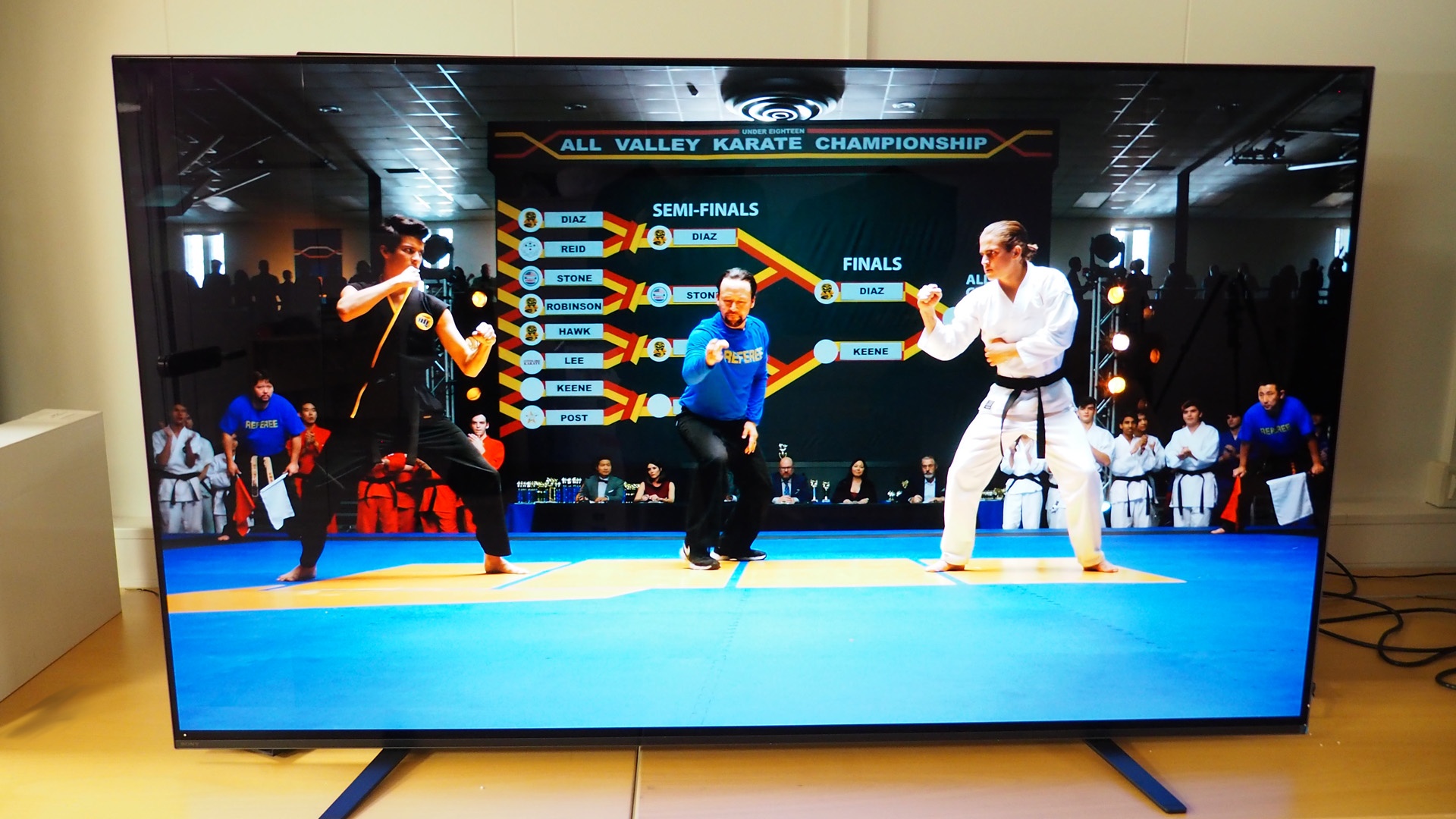 För det första har A85 ett imponerande starkt, brett och naturligt färgspektrum. I säsong 1 av Cobra Kai (Netflix) finns ett avsnitt där karatelärlingen Robert besöker en skatepark. De här utomhusscenerna är egentligen helt vanligt TV-innehåll, utan någon speciell imponator-faktor. Men Sony lyckas få dem att se skrämmande realistiska ut! Den turkosblå himlen lyser mot oss med en intensitet och ett färgdjup som vi knappt har sett maken till, utan att det känns överdrivet eller övermättat på något sätt. Hudtoner och gräs ser fortfarande väldigt naturliga och nyanserade ut. Här verkar det som om Sony-skärmen har fått en ordentlig ”vitamininjektion” jämfört med förra årets modell.