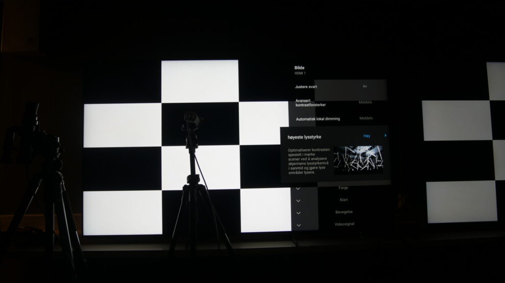 En snabb koll med ljusmätaren avslöjar att Sony-skärmen klockar in på närmare 1 500 nits på 10 % skärmyta. Som jämförelse fick vi nästan 2 000 nits i ett lika stort testfönster på Samsung QN95C.